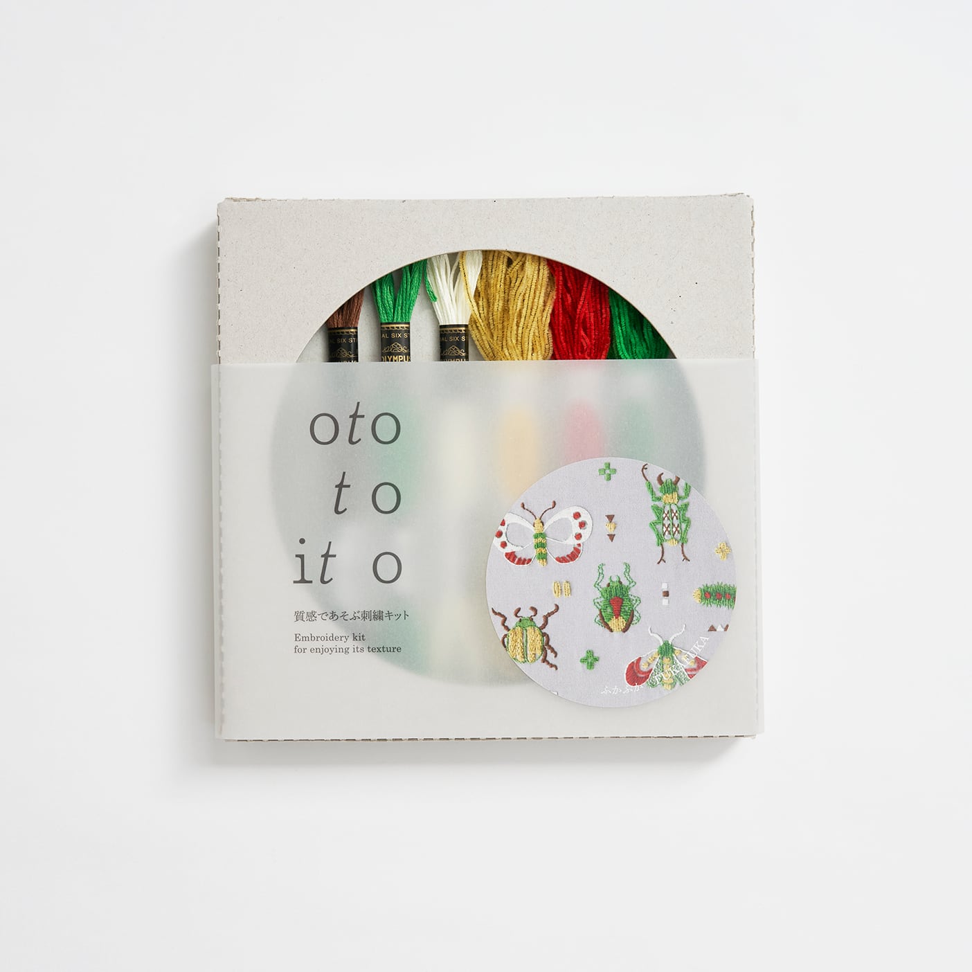 きらきら、もふもふ、ふかふか、つるつる、ぴかぴか、ふわふわ……。日本語は、 “オノマトペ”の表現が豊かな言語と言われています。「ototoito」はちょっと変わった表情の糸を使うことで、オノマトペから連想する手触りをだれでも手軽に表現できる刺繍シリーズとして、装いの庭と刺繍作家atsumiさんの共同で開発しました。