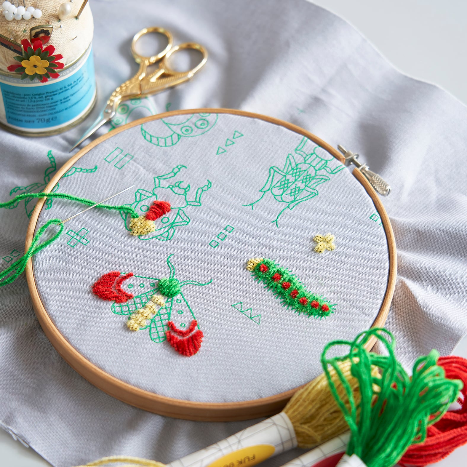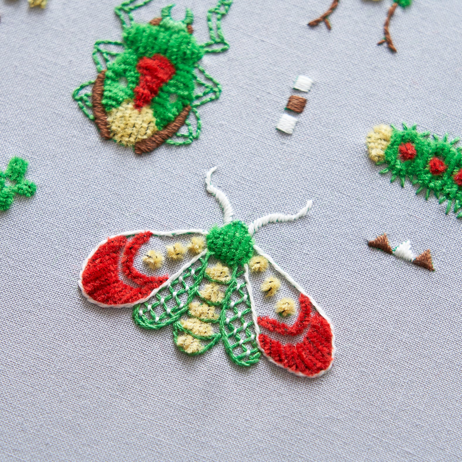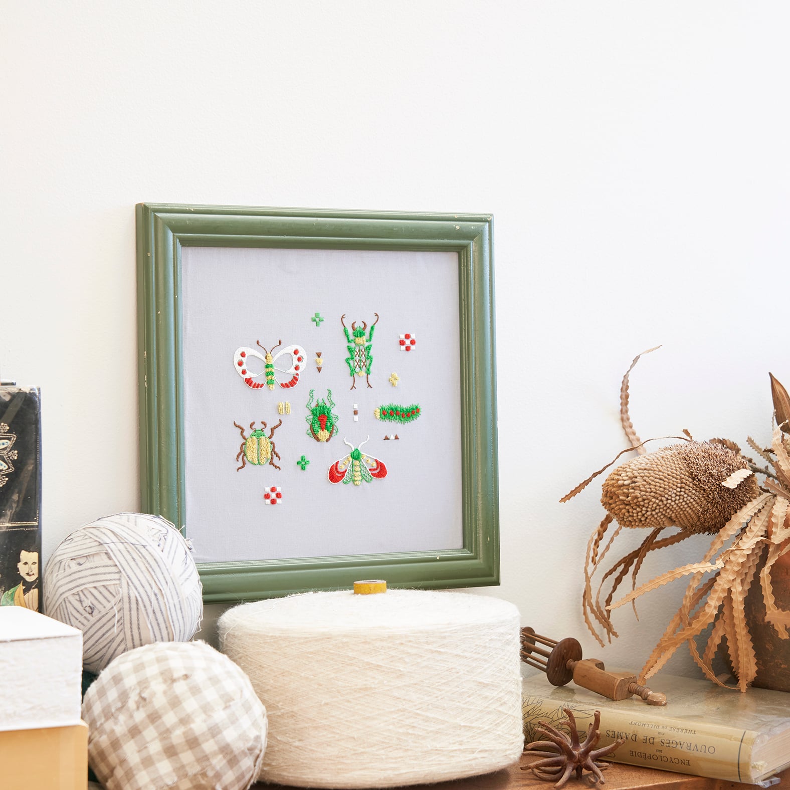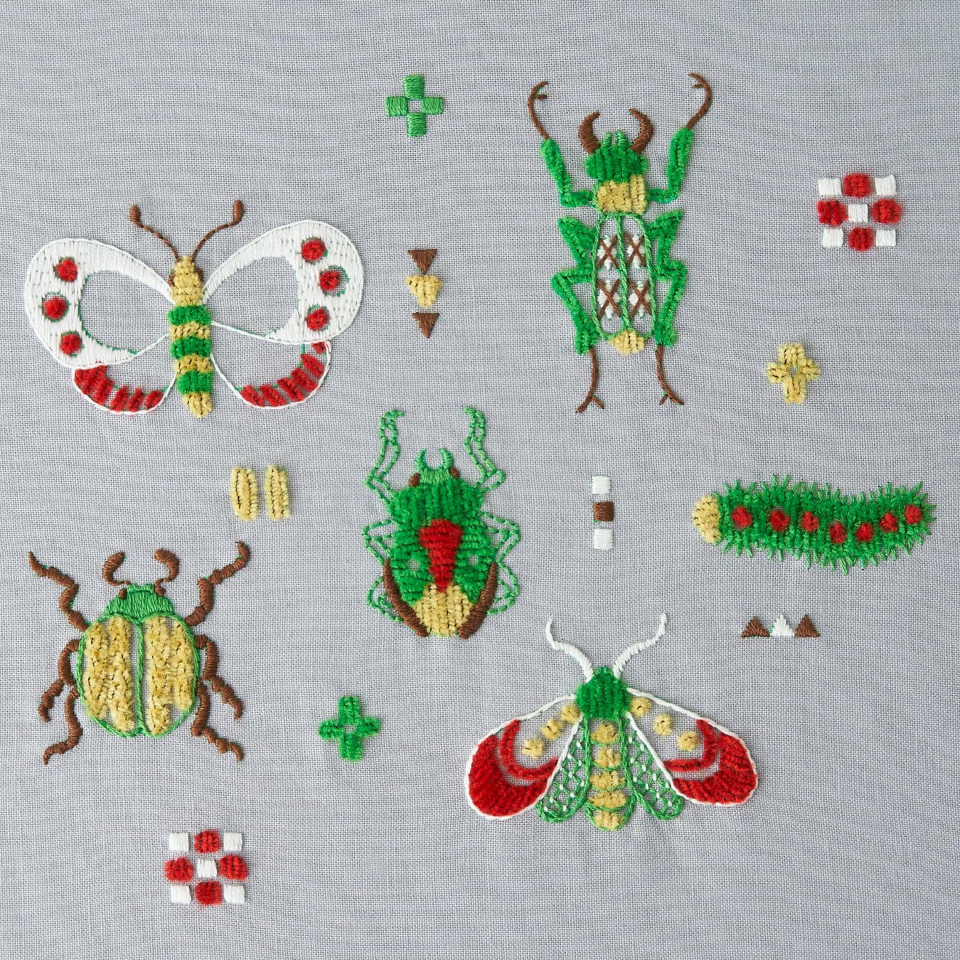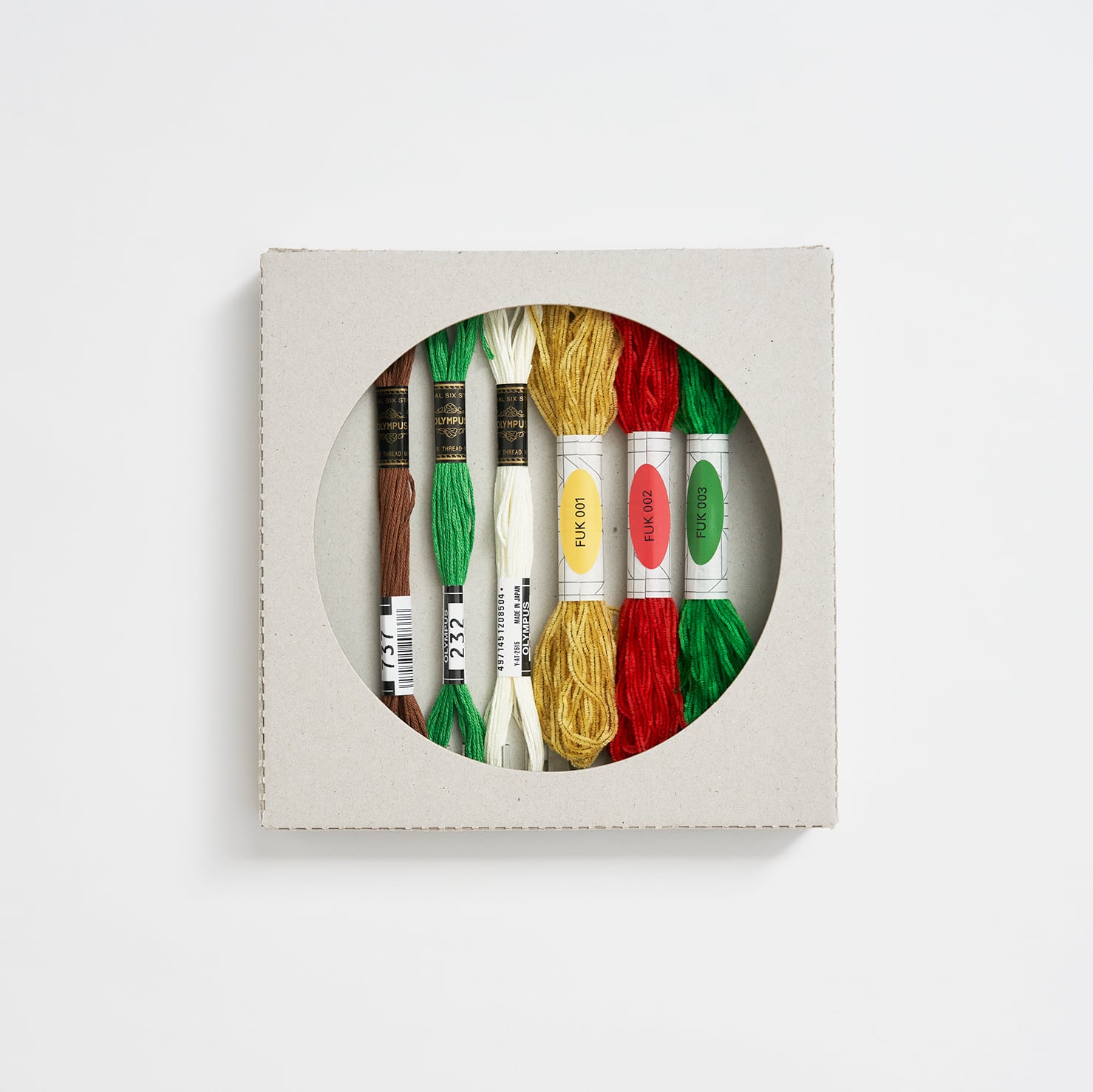 キットの中には見本に使われているすべての刺繍糸と専用の刺繍針、糸通し、図案が印刷された布、ステッチ練習用の布が専用のボックスに入っています。ボックスのフタは切り取って作品の額装としても使えます。個性豊かな糸を使って、あなたも一緒に新しい刺繍の世界を切り開きませんか?