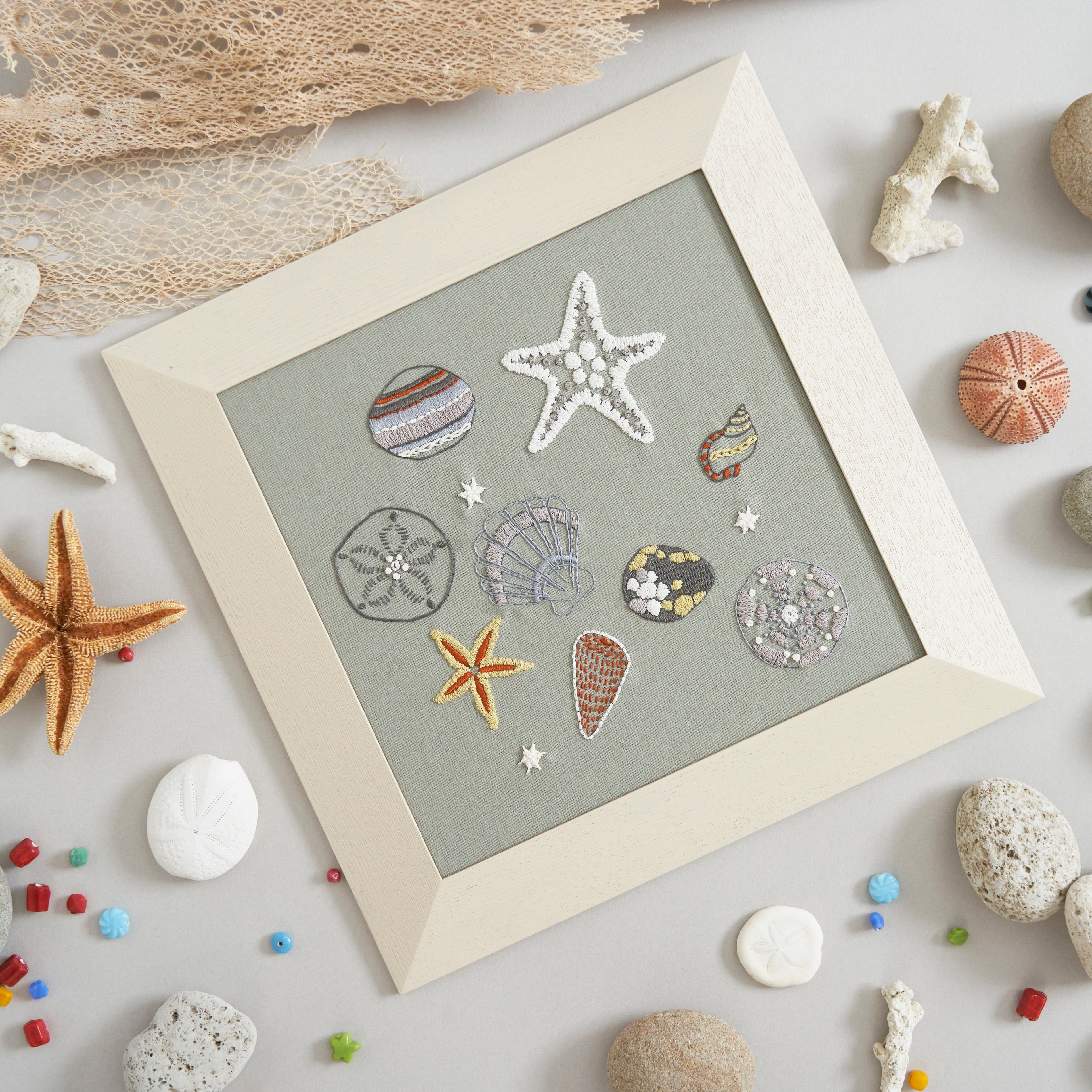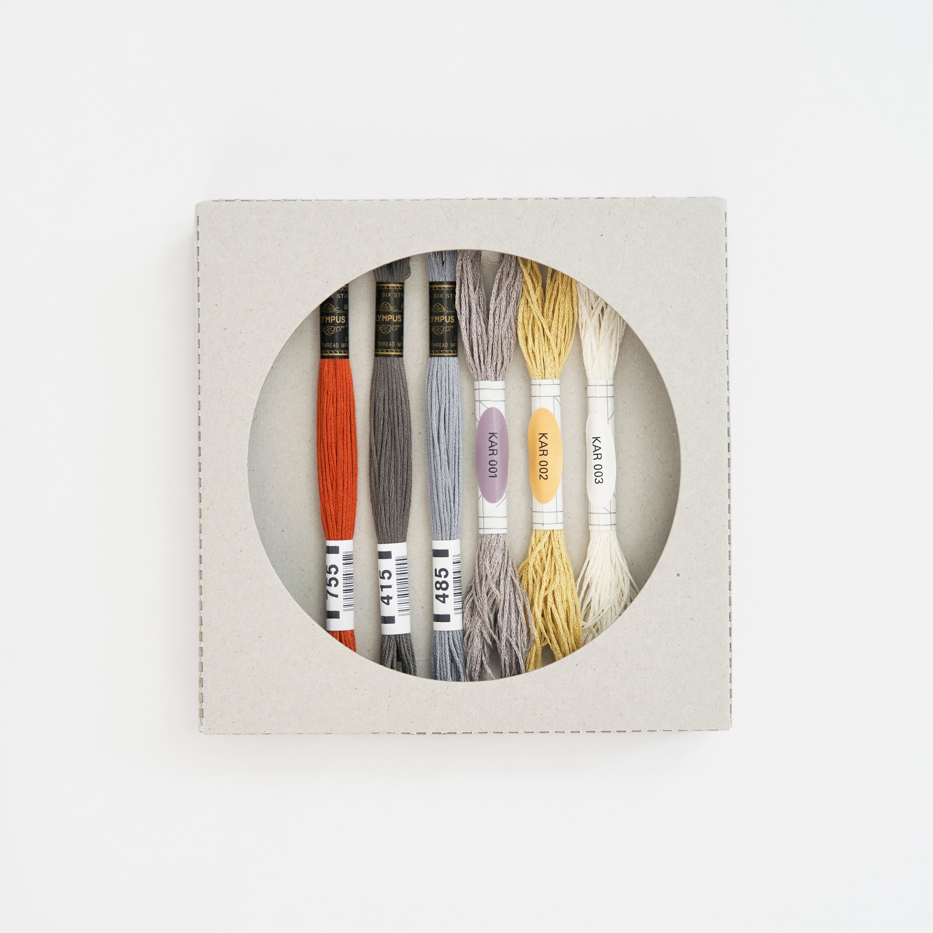 キットの中には見本に使われているすべての刺繍糸と専用の刺繍針、糸通し、図案が印刷された布、ステッチ練習用の布が専用のボックスに入っています。ボックスのフタは切り取って作品の額装としても使えます。個性豊かな糸を使って、あなたも一緒に新しい刺繍の世界を切り開きませんか?