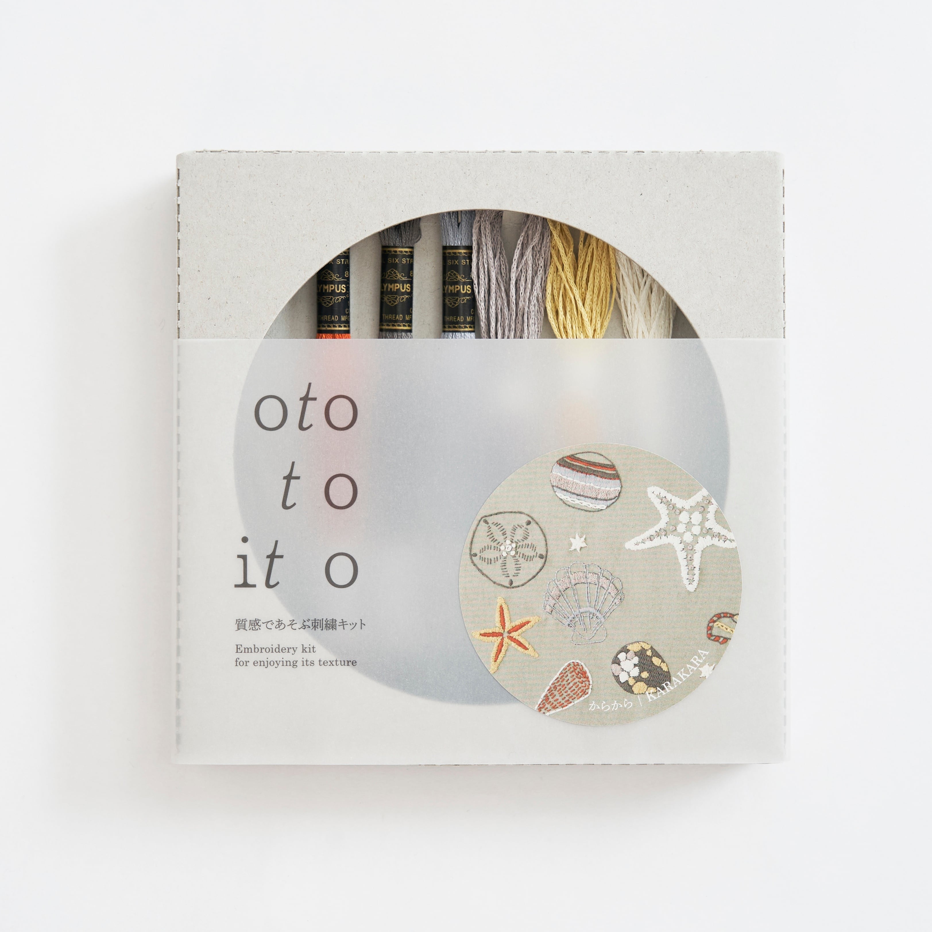 きらきら、もふもふ、ふかふか、つるつる、ぴかぴか、ふわふわ……。日本語は、 “オノマトペ”の表現が豊かな言語と言われています。「ototoito」はちょっと変わった表情の糸を使うことで、オノマトペから連想する手触りをだれでも手軽に表現できる刺繍シリーズとして、装いの庭と刺繍作家atsumiさんの共同で開発しました。