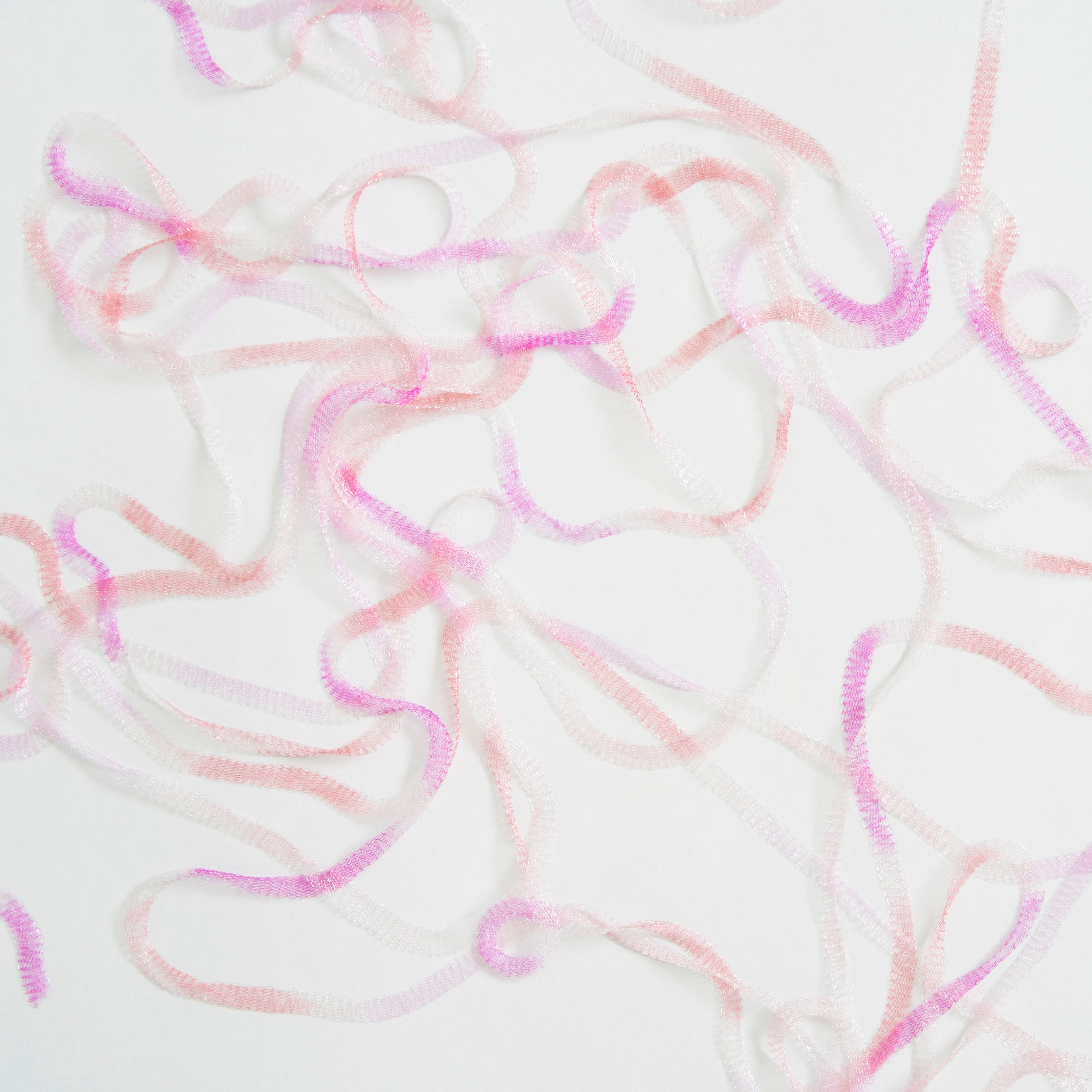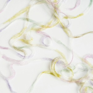 毛足の長い猫や犬を撫でているときのようなもふもふとした触り心地、短めの毛足がベルベットのようなふかふかとした質感、透明のガラスや水面、ネオンのきらきらとした輝き。日常の中で魅力に感じるあんな質感やこんな触り心地を刺繍で表現できないだろうか? この糸はそんな思いつきから着想を得ています。