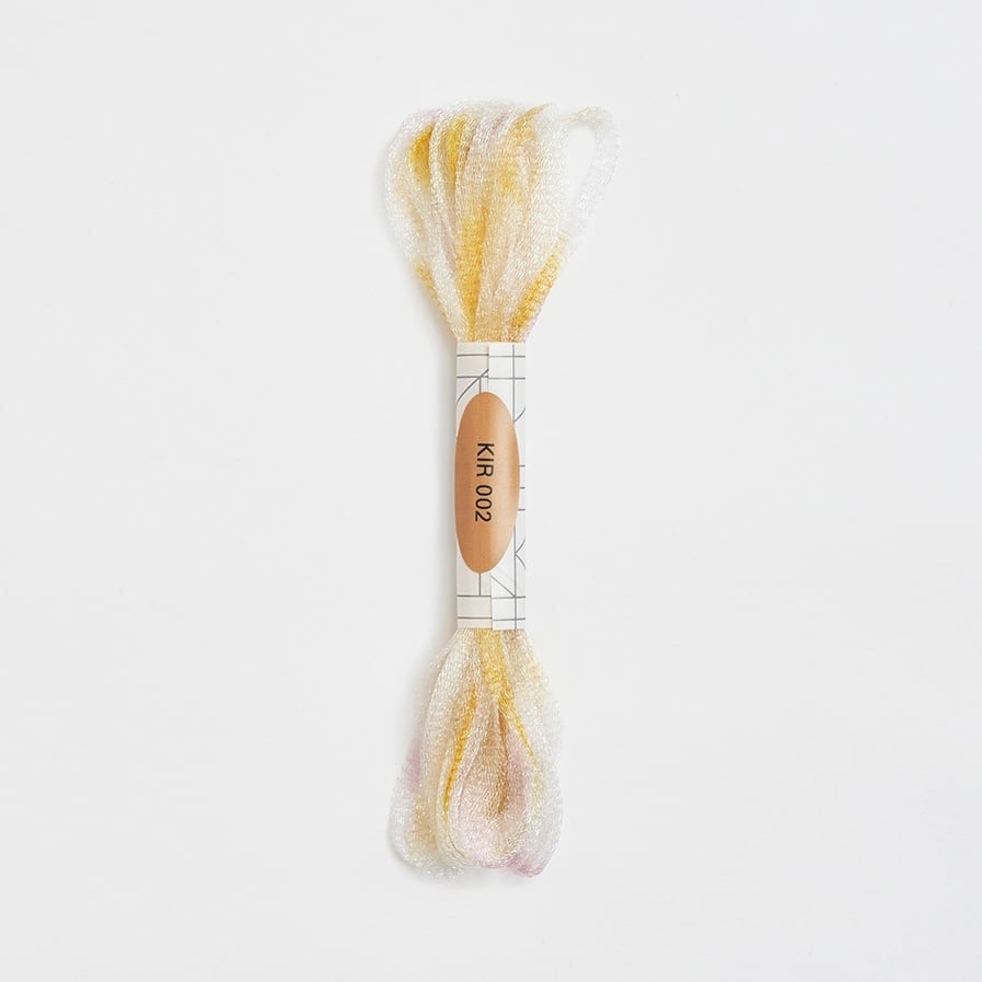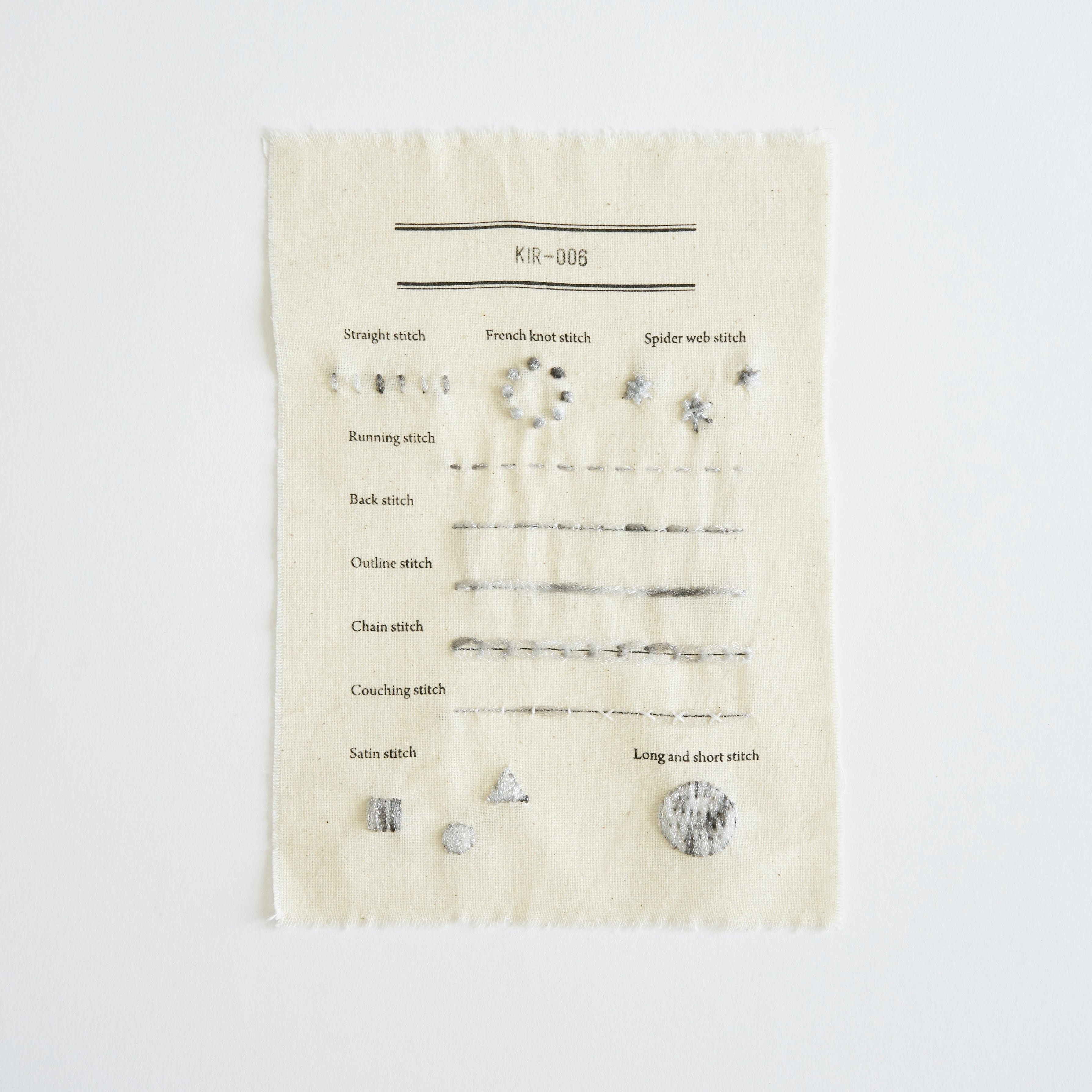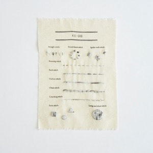 糸は愛知県一宮市の撚糸メーカー・近藤株式会社でオリジナルで作られたものです。愛知県一宮市は「意匠撚糸」と呼ばれるさまざまな形状の糸を作り出す技術を持った国内随一の産地です。開発にあたってこの産地を訪れ、たくさんのサンプルを試し、表情がきちんと出ながらも刺しにくくない絶妙な太さの糸を見つけ出しました。