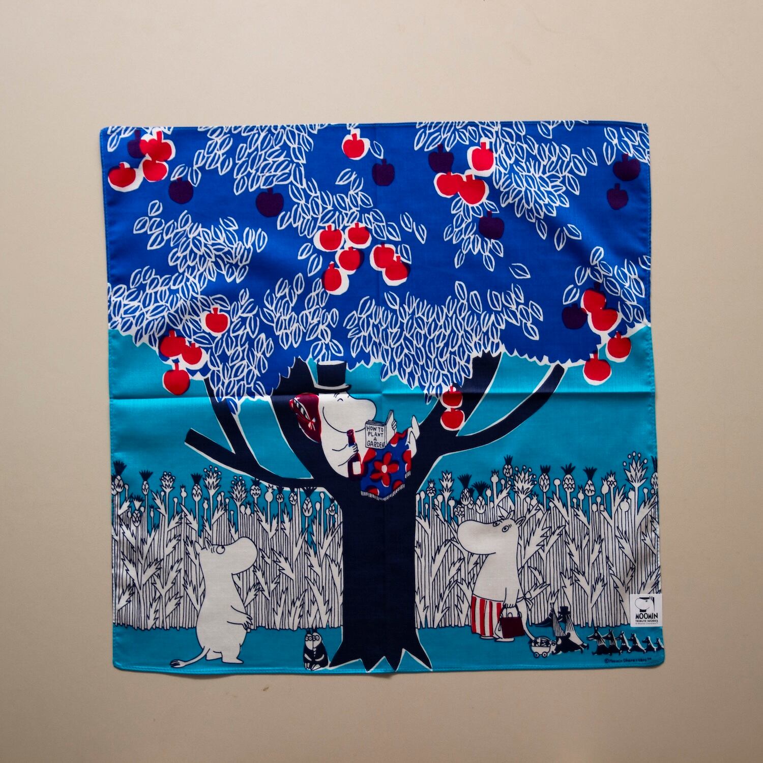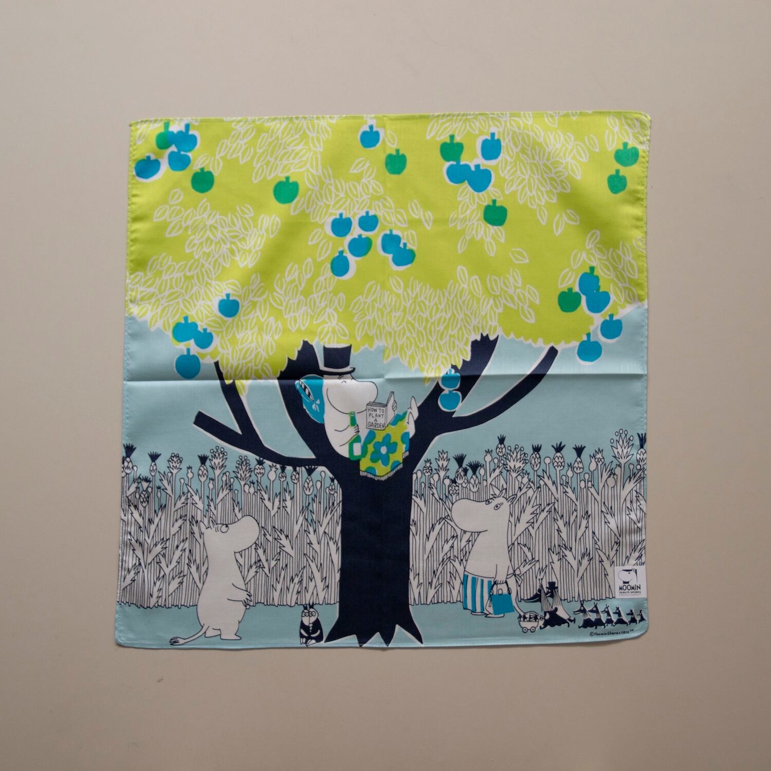 テキスタイルデザイナーの鈴木マサルさんがデザインしたMOOMIN TRIBUTE WORKSシリーズのハンカチです。