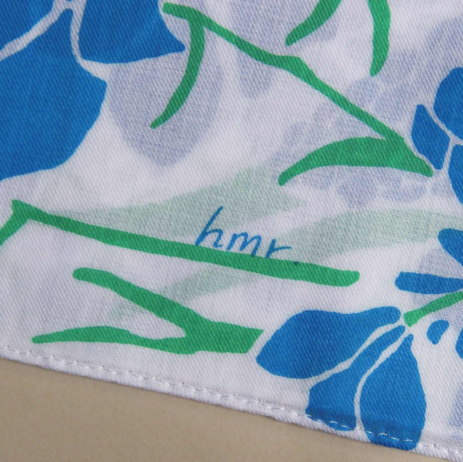 四辺は直線縫いではなく、まつり縫い仕上げになっています。厚みが抑えられ上品でやわらかな印象の仕上げです。